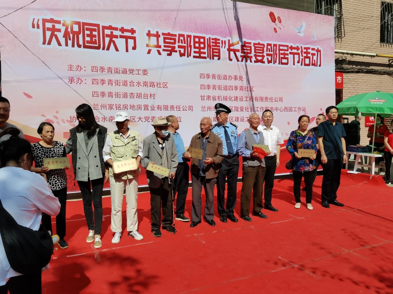 為弘揚鄰里互助的傳統(tǒng)美德,構(gòu)建“鄰里關(guān)愛、團結(jié)互助、共創(chuàng)和諧”的新型鄰里關(guān)系,營造轄區(qū)居民積極參與社區(qū)文明創(chuàng)建的良好氛圍,喜迎“國慶”。近日,由四季青街道黨工委主辦“慶祝國慶節(jié)共享鄰里情” 長桌宴鄰居節(jié)活動在機械化家屬院隆重舉行。我司黨委書記、四季青街道等共計200余人參加了此次活動。