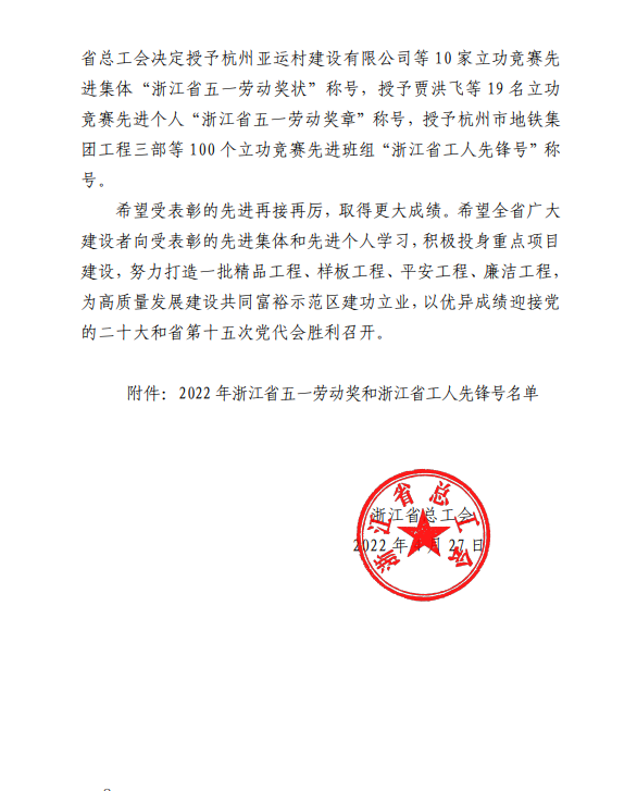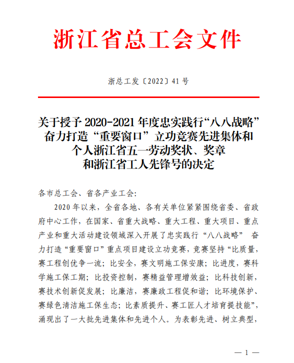 4月27日,我司新建浙江麗水機(jī)場(chǎng)(第一批)02 標(biāo)段項(xiàng)目部榮獲“浙江省工人先鋒號(hào)”稱號(hào)。