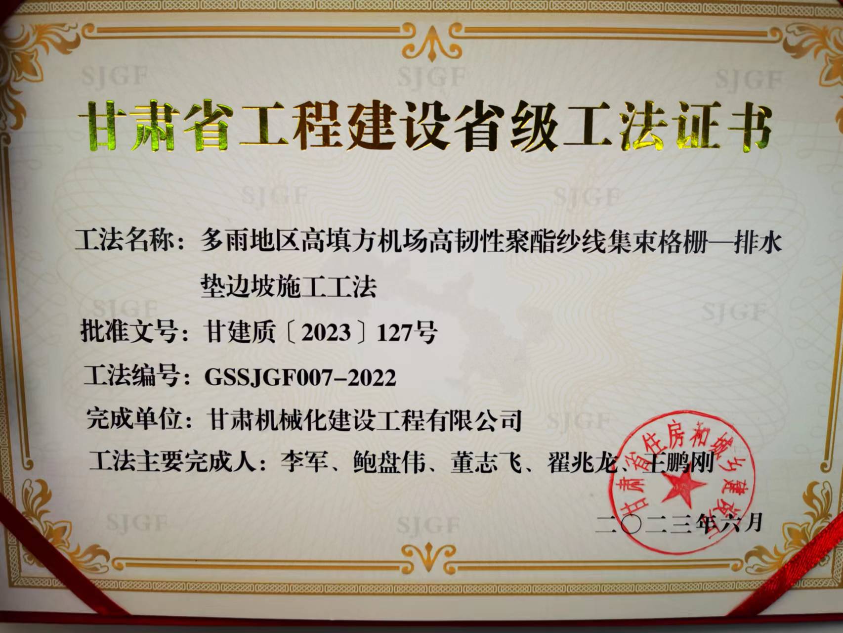 近日,甘肅省住房和城鄉(xiāng)建設(shè)廳頒發(fā)省級(jí)工法證書(shū),我司獲得省級(jí)工法榮譽(yù)。