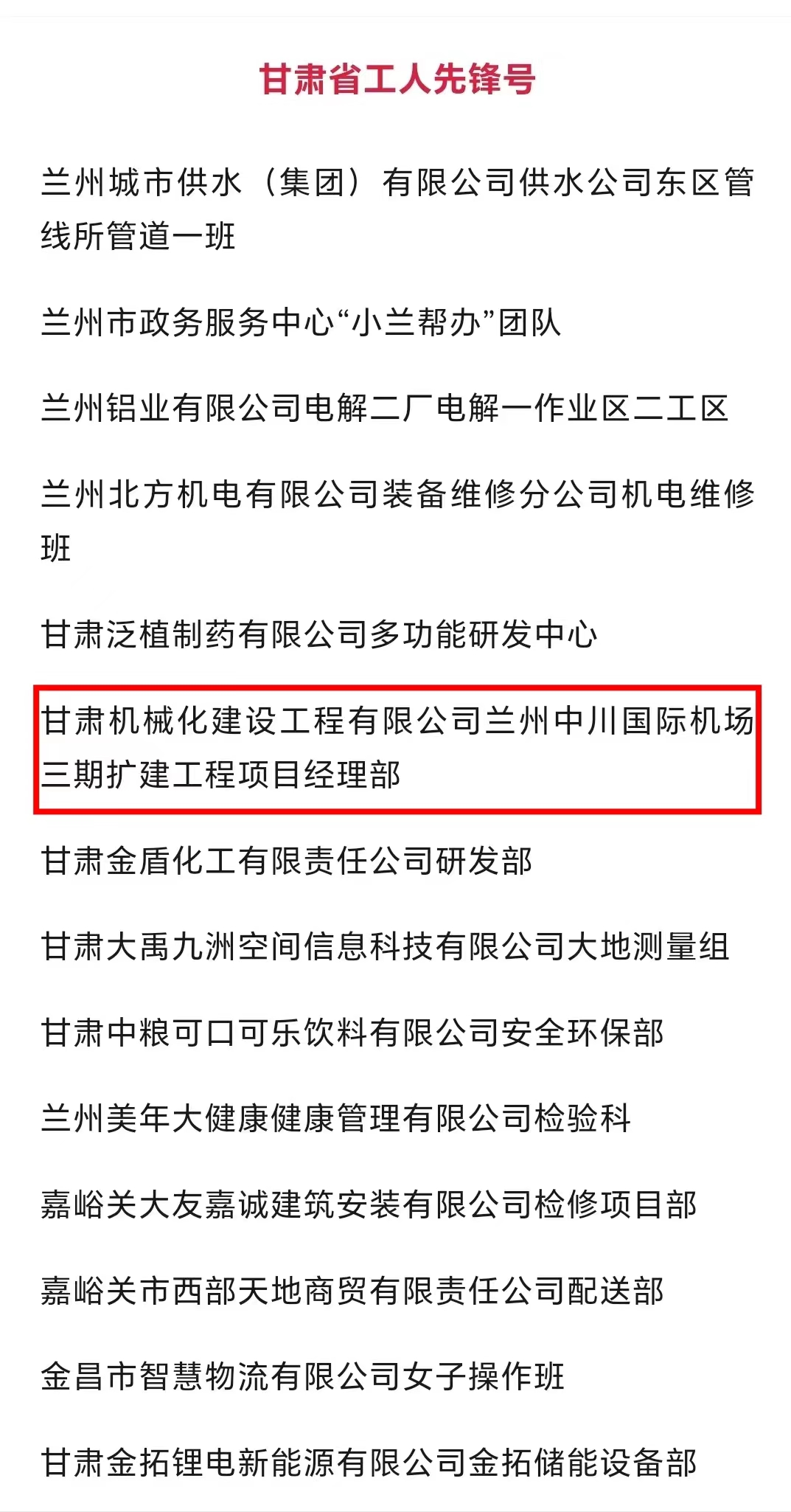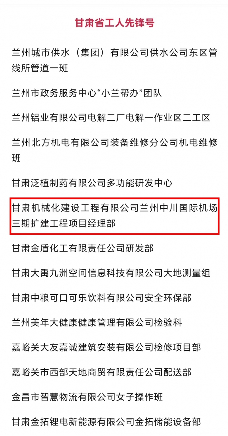 近日,甘肅省總工會發(fā)布了2024年甘肅省“五一勞動獎和甘肅省工人先鋒號”擬表彰對象的公示。我司蘭州中川國際機場三期擴建工程項目經理部被授予“甘肅省工人先鋒號”,該獎的獲得既是對項目團隊長期拼搏奮斗的肯定,也是對公司“和諧共進、追求卓越”企業(yè)精神的肯定。